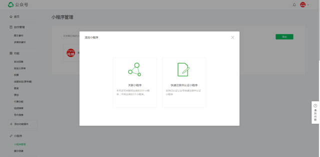 1、公眾號后臺,點擊“小程序管理”- 選擇“快速注冊并認證小程序”,這樣注冊的小程序賬號會自動認證。